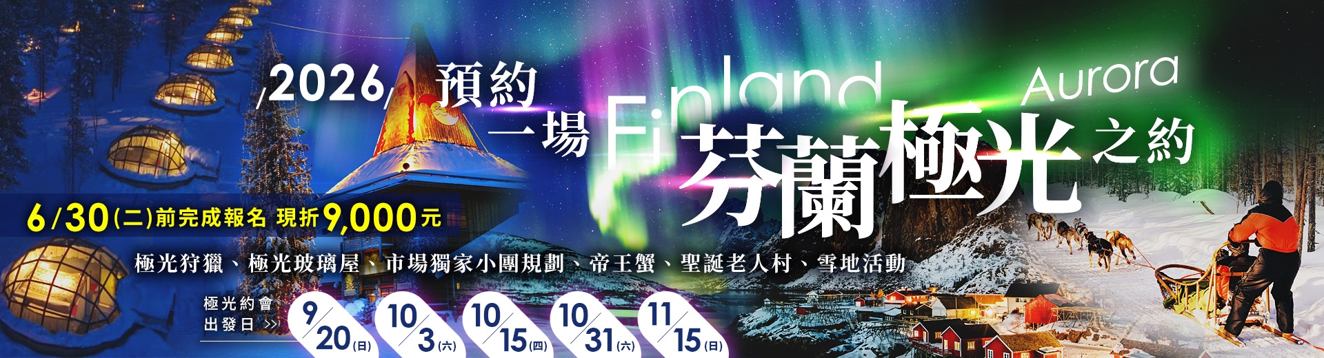 【2026夢幻秋季芬蘭】歐洛拉降臨,極光之越夜越美麗,北歐芬蘭十日